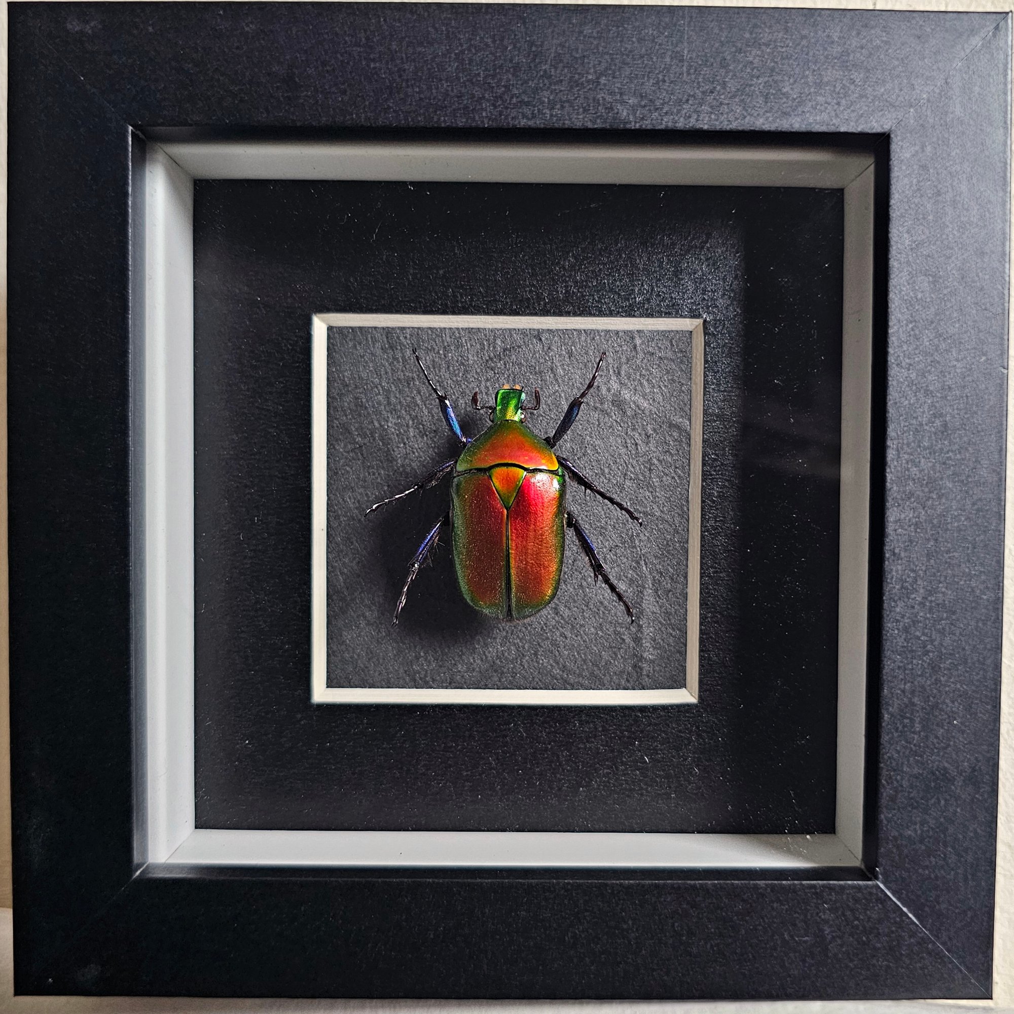 Frame: black coated wood w/glass & card mount