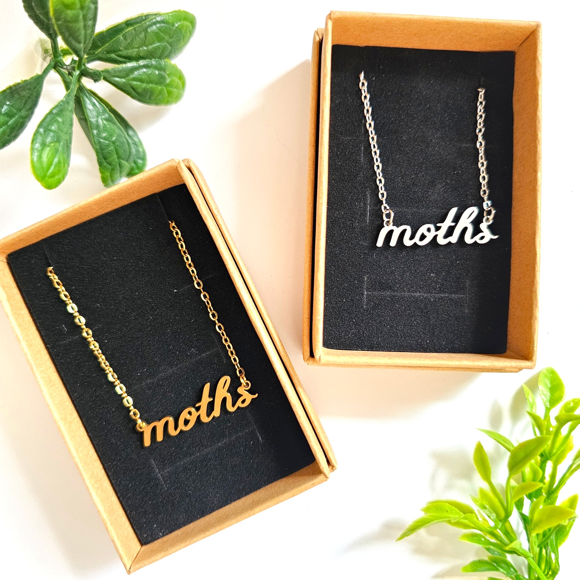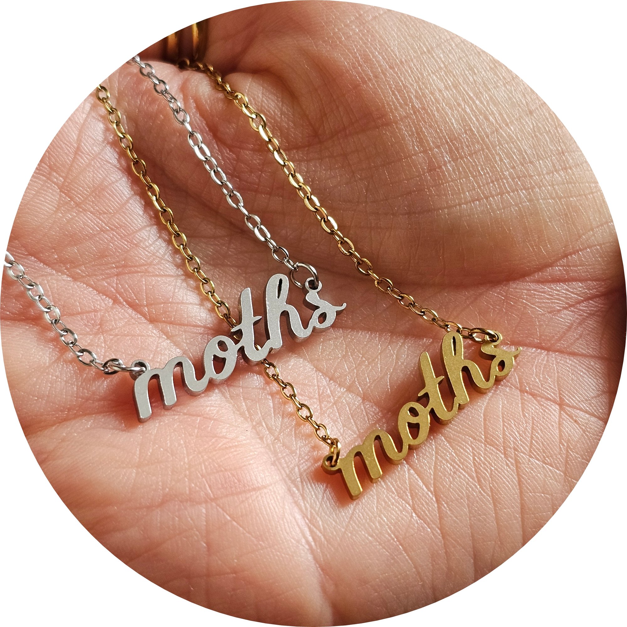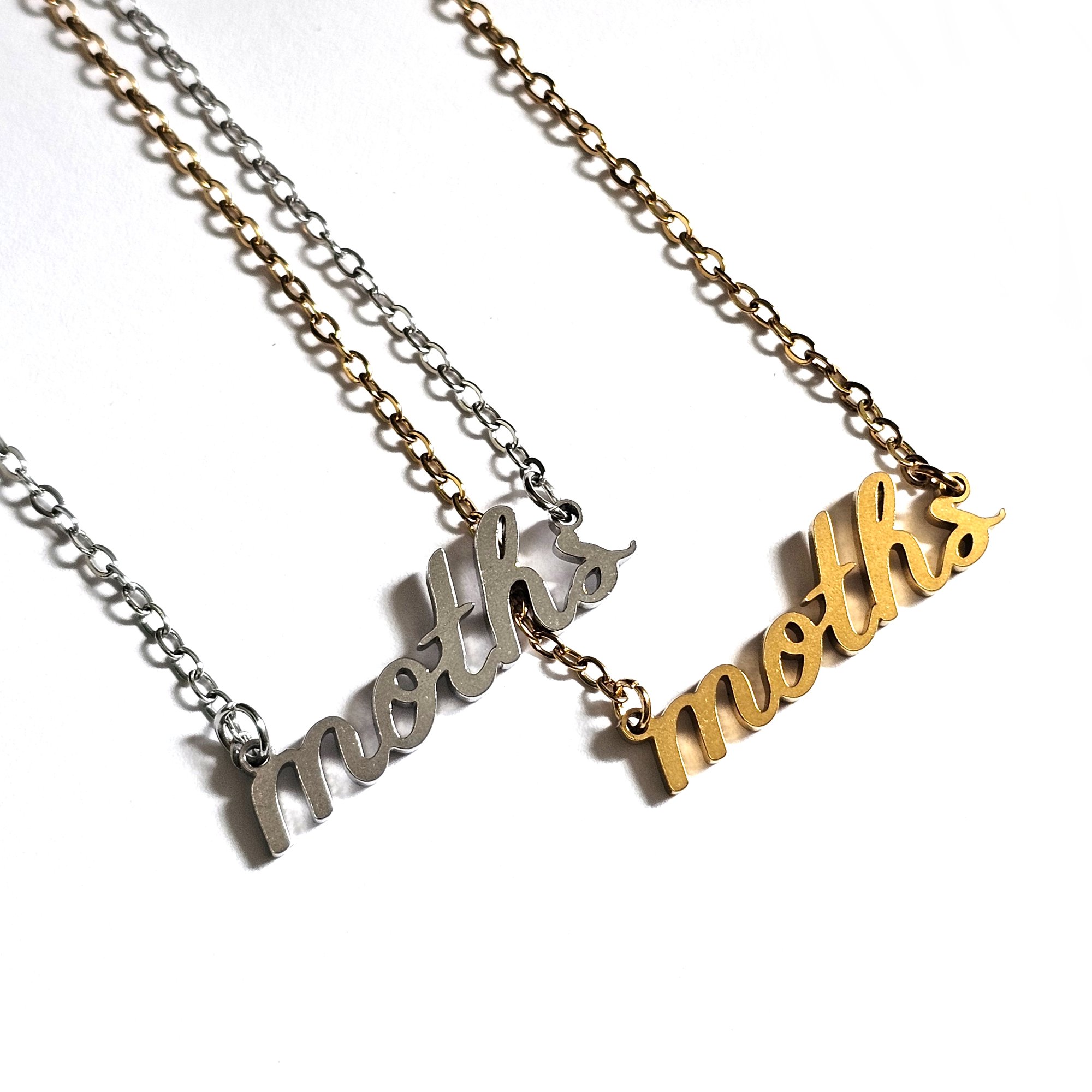 'moths' Cursive Text Steel Necklace